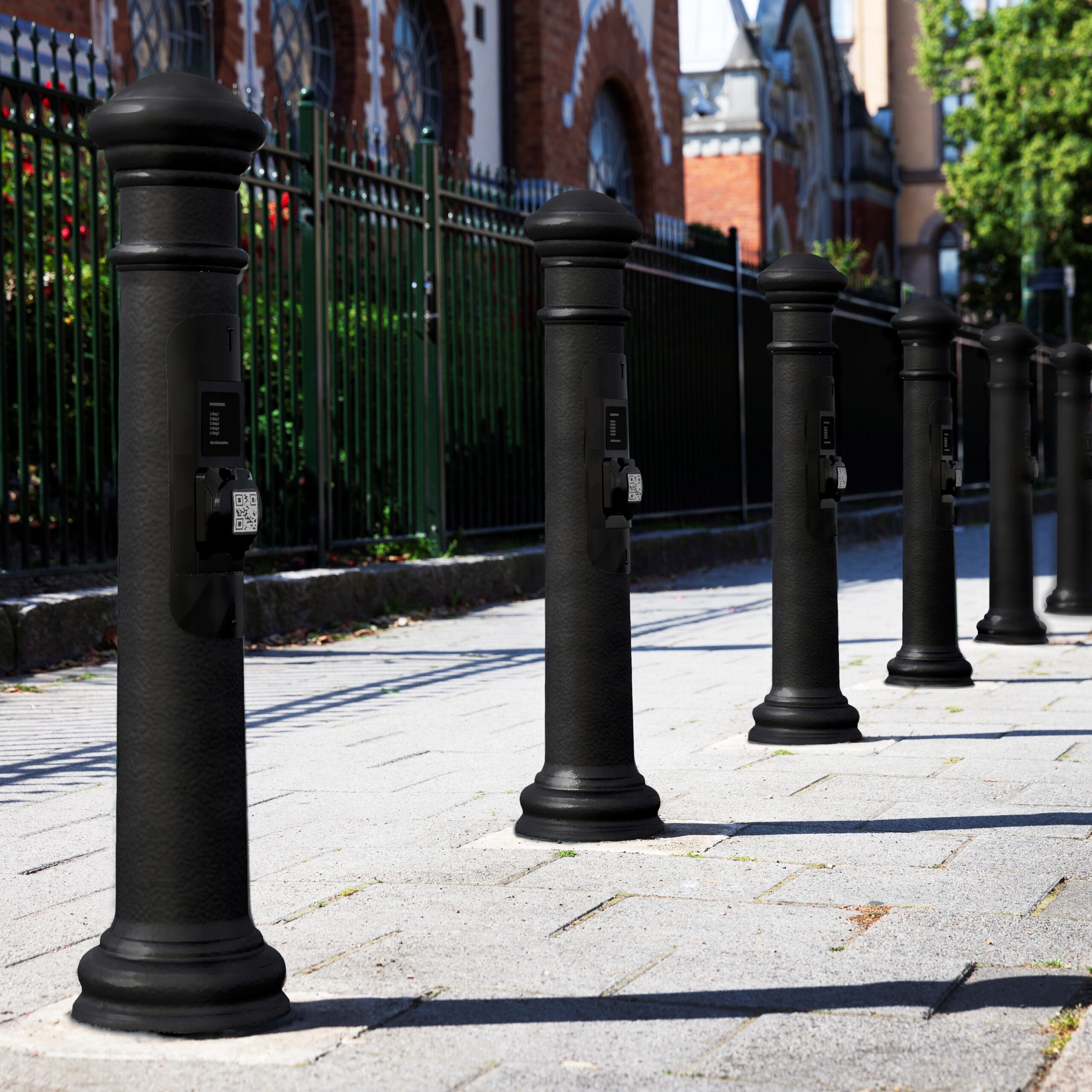 Elbilens historia går tillbaka mer än 200 år och började redan på 1800 talet! Visste du att den första bilen någonsin var en elbil? Den körde 10 km/h – som vid den tiden ansågs farligt snabbt. Det passar in i samma tidsepok som våra belysningsstolpar och pollare faktiskt. Vad vore inte mer naturligt då än att använda en laddstolpe i klassiskt gjutjärn som är hållbart och vandalsäkert.
