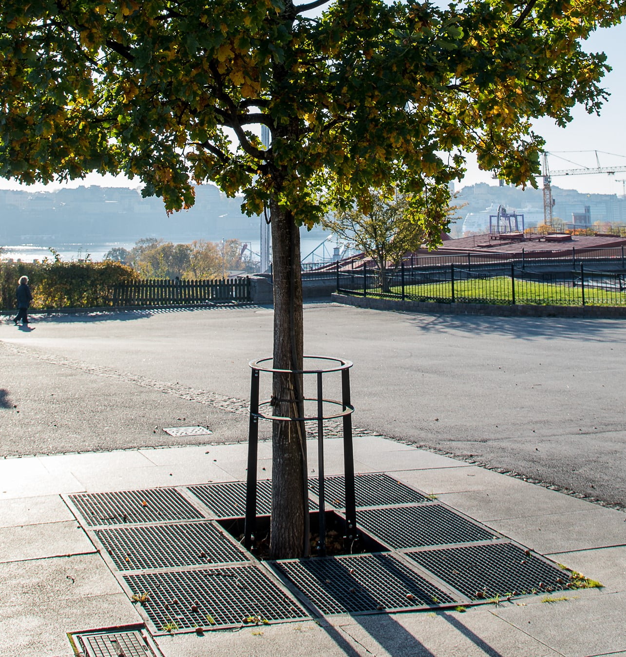 Markgaller syftar till att förhindra punktlaster som komprimerar planteringsjorden, då säkerställs det att rötterna får luft och vatten, vilket är ett grundläggande villkor för trädets överlevnad.