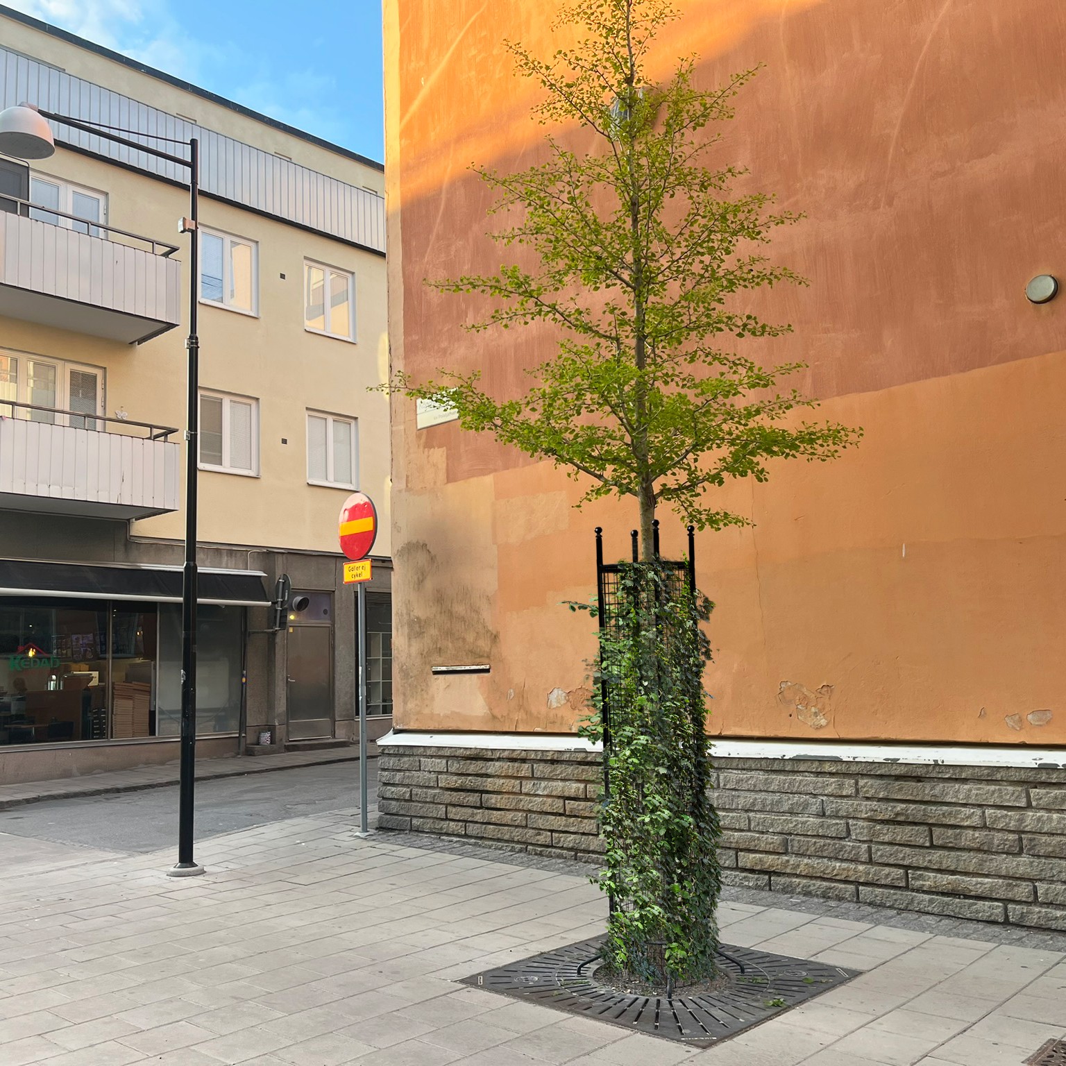 För att skapa en mer blomstrande stadsmiljö går Sorbus att få med gnagskydd för att plantera klätterväxter kring trädet. Genom att kombinera träd med färgstarka blommor främjar vi den biologiska mångfalden, ger viktiga livsmiljöer för pollinatörer och skapar samtidigt en mer trivsam och vacker stadsmiljö för invånarna.
