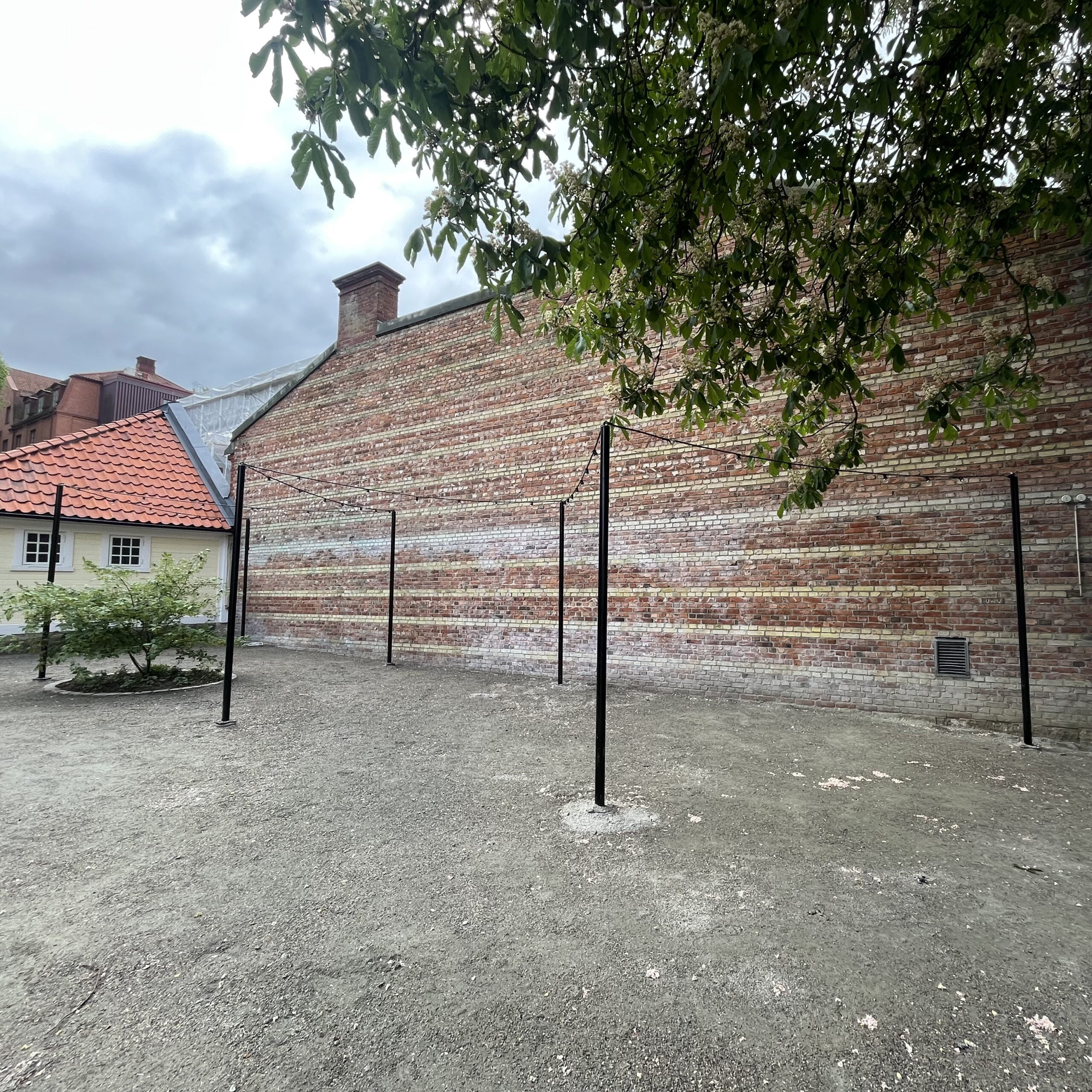 | Benämning | Rak stolpe med ögla i toppen för upphägning av belysningslinga inkl betongfundament |