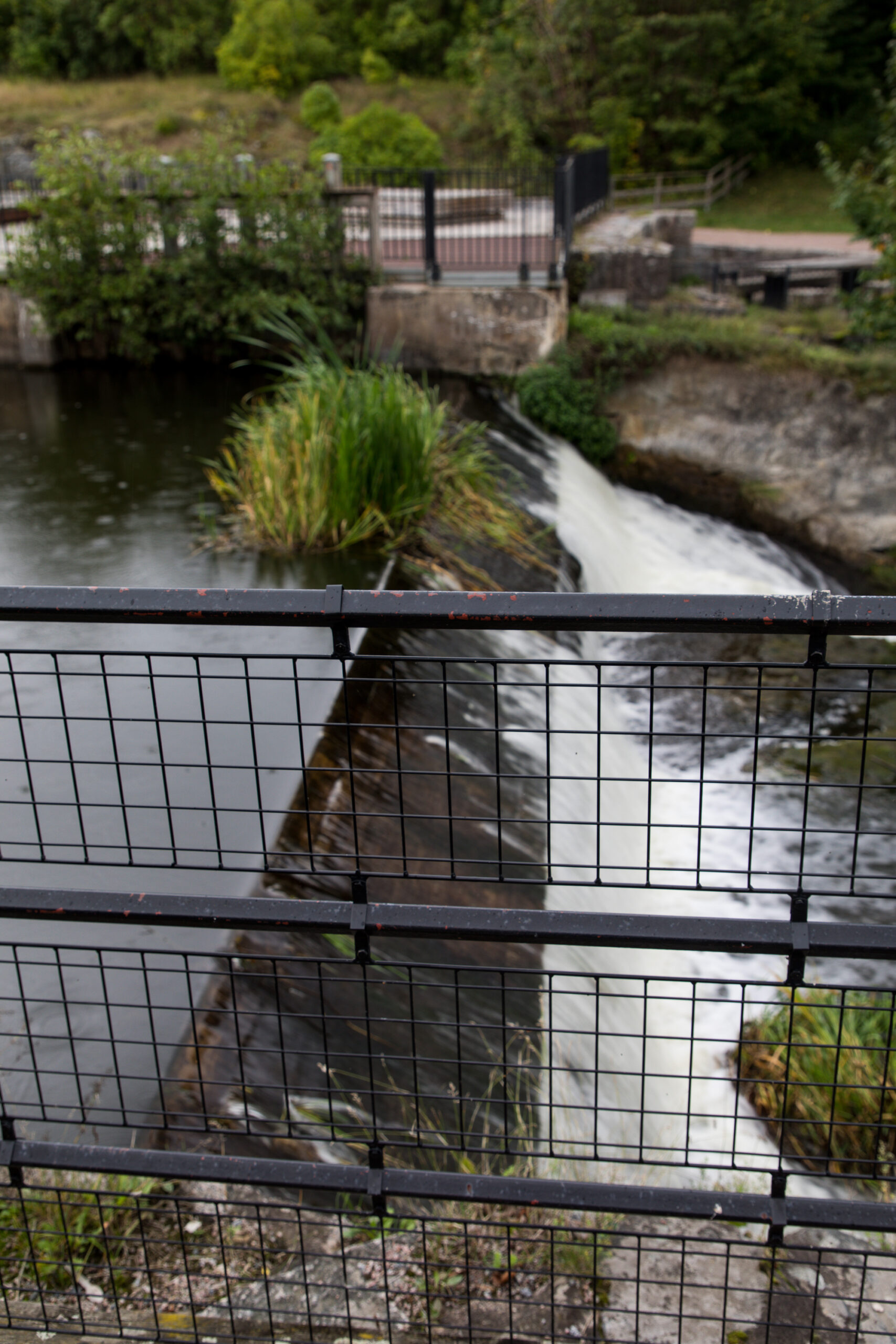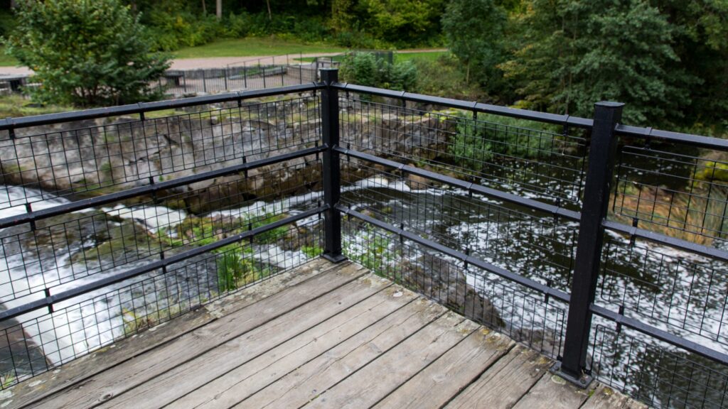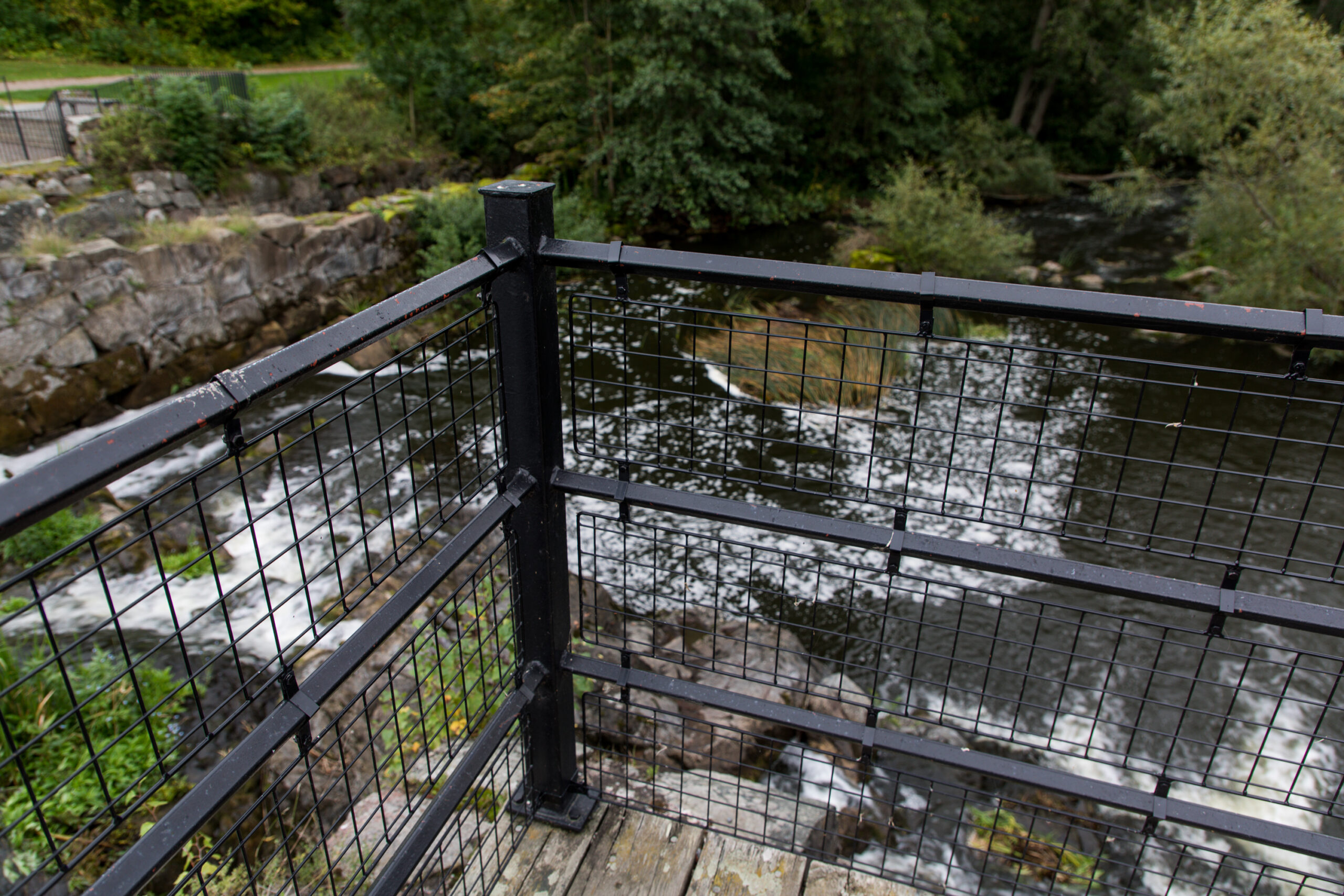 Vid den historiska forsen i Ulva kvarn, där vattenkraften i flera hundra år format både hantverk och liv, finns staket som vi på Järn i Offentlig Miljö levererade för många år sedan.